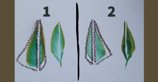(1) Si la plume que l’on souhaite peindre doit être tournée vers la droite  il faut dessiner le triangle de la partie droite plus mince que celui de la partie gauche.